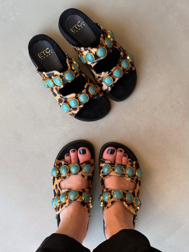 Mada Mule – Caramel Leather with Embroidered Greek Eyes